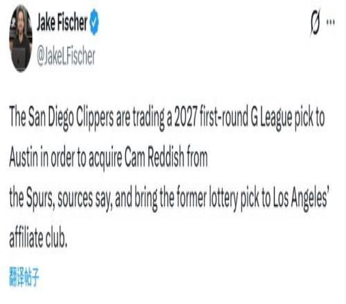 另據名記Fischer報道,雷迪什被馬刺的發展聯盟附屬球隊奧斯汀馬刺認領。隨后,奧斯汀馬刺把雷迪什交易至圣迭戈快船(快船發展聯盟附屬球隊),換取2027年發展聯盟選秀大會的一個首輪簽。