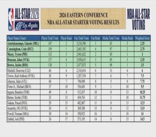 特別是在最近結(jié)束的全明星投票環(huán)節(jié),雖然在球迷投票環(huán)節(jié)他的票數(shù)247萬僅位列東部第5,但在球員互投環(huán)節(jié)他獲得138張選票,在東部所有球員中排名第3,僅低于坎寧安的159票和字母哥的147票,而在更有含金量的籃球記者、評論員投票環(huán)節(jié),布朗獲得98張首輪票,在東部球員中高居第1,最終綜合評分3.5分,職業(yè)生涯首次入選全明星首發(fā),他的擔當表現(xiàn)收獲了一致認可.